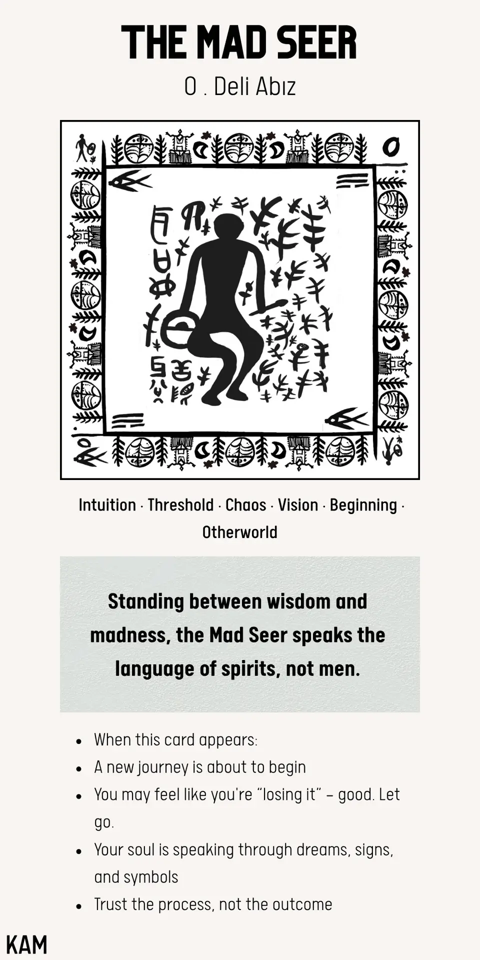 0 – Deli Abız, Kam Tarot yolculuğunun başlangıcıdır. Şakacının arketipine dayanan bu kart, kutsal deliliği, sezgisel sıçramaları ve yeniden başlama cesaretini anlatıyor. Türk mitolojisinde, Abız dolaşan bir seer, şairane bir deli, dünyalar arası bir köprüdür. O, bozkır rüzgarlarının kahkahası, saf potansiyelin kıvılcımıdır.
